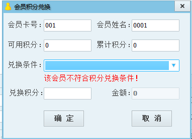 点击“10.积分兑换”兑换会员积分,兑换的前提是先输入会员,确保会员积分达到兑换条件。注意: