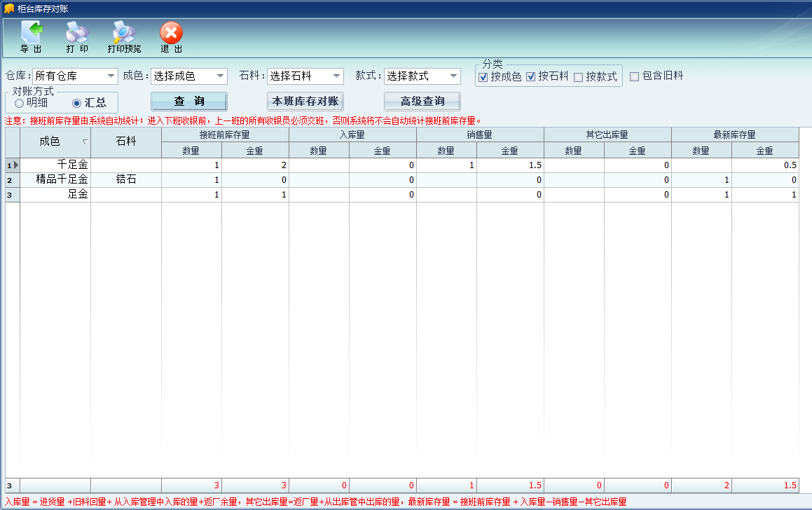 e.柜台库存对账,主要是方便实时核对当时库存变化情况,了解最新库存的情况,方便交接班的时候进行柜台库存对账。